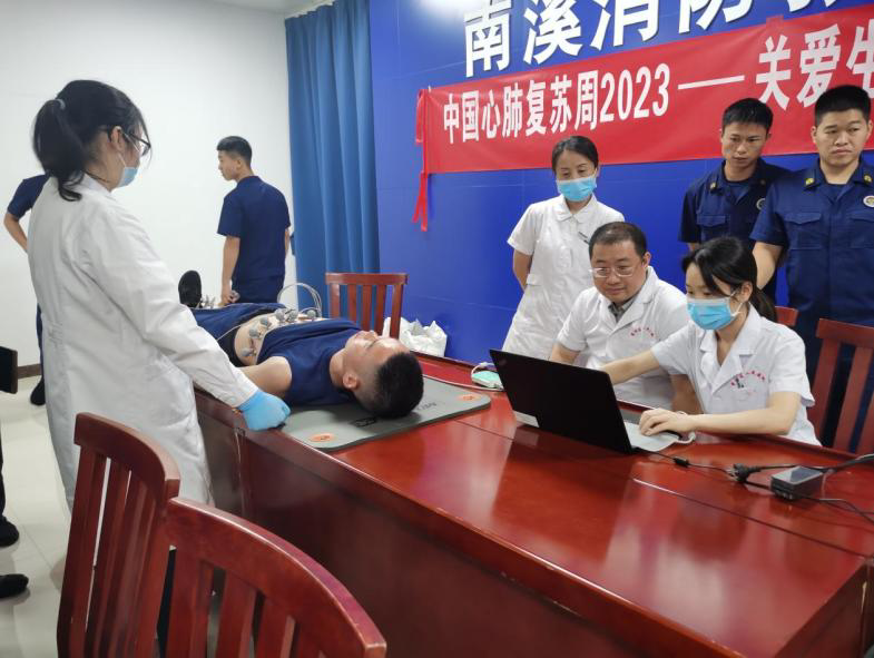 2023年中国心肺复苏周来临之际,香洲区pilipili 胸痛中心、凤山社区健康服务中心胸痛单元联合珠海市医师协会重症医学医师分会积极响应心血管健康联盟、中国胸痛中心联盟倡议,走进南溪消防救援站开展“关爱生命,救在身边”心肺复苏周主题活动,以此提升消防官兵们心脏急救意识及胸痛患者判别、心肺复苏操作能力,提高心脏骤停救治成功率,挽救更多患者的生命。